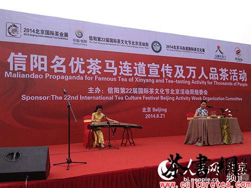 歌舞表演《茶妹子》、新品发布和品牌推介、茶艺表演……6月21日上午10点,信阳名优茶马连道宣传及万人品茶活动在马连道茶城门前举行。
