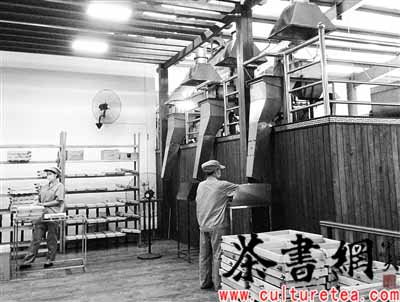 穿上白大褂、带上防尘帽、套上蓝鞋套、冲洗过双手、关进风淋室,经过一整套“程序”,记者才得以进入茯茶龙头企业陕西怡泽茯茶有限公司的生产车间。“我们是用生产食品的标准来生产泾盛裕茯茶的。”企业董事长马恒光解释说。在窗明几净的车间里,不仅有现代化的实验室、检验室、筛选车间、烘焙室,还保留了古老的手工制茶工艺,如筑胚成封环节。工人们先把封袋衬在坯模内,打开封袋口,把炒好的茶灌入、筑夯,筑好后封口,退模后一次成封。整个过程一气呵成。当封好的茶经过蒸汽灌注时,茶香四溢。茯茶要经过120摄氏度汽蒸、40吨压制、25个日夜恒温恒湿发酵,才能收获古新交融的清香。