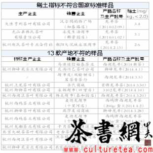 本次比较试验对样品的铅含量、稀土含量进行了测试。经测试,所有样品中没有发现铅含量超标的情况,但有3个样品稀土含量超过国家标准要求,这在龙井茶检验中是非常少见的。