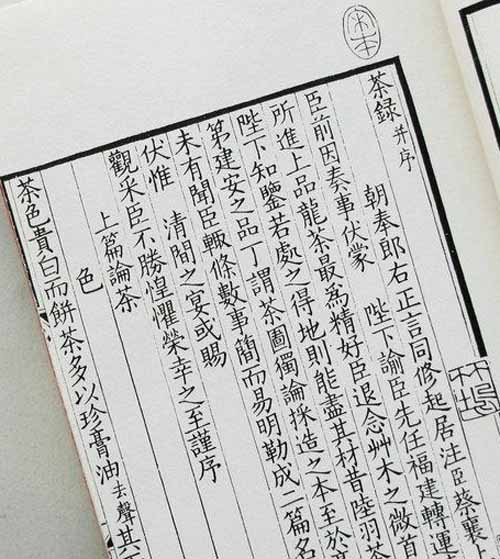《茶录》古代中国饮茶论著。共一卷,一作二卷。北宋蔡襄(1012—1067)作于北宋皇佑年间(1049—1053),是宋代重要的茶学专著。蔡襄有感于陆羽《茶经》“不第建安之品”而特地向皇帝推荐北苑贡茶,由此写作《茶录》。全书分为两篇。上篇论茶,分色、香、味、藏茶、炙茶、碾茶、罗茶、侯茶、熁盏、点茶十目,主要论述茶汤品质和烹饮方法。下篇论器,分茶焙、茶笼、砧椎、茶铃、茶碾、茶罗、茶盏、茶匙、汤瓶九目。是继陆羽《茶经》之后最有影响的论茶专著。